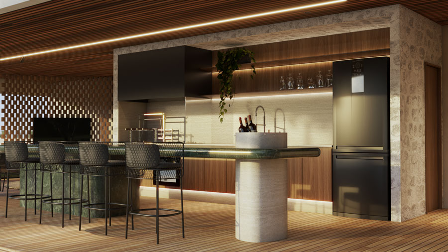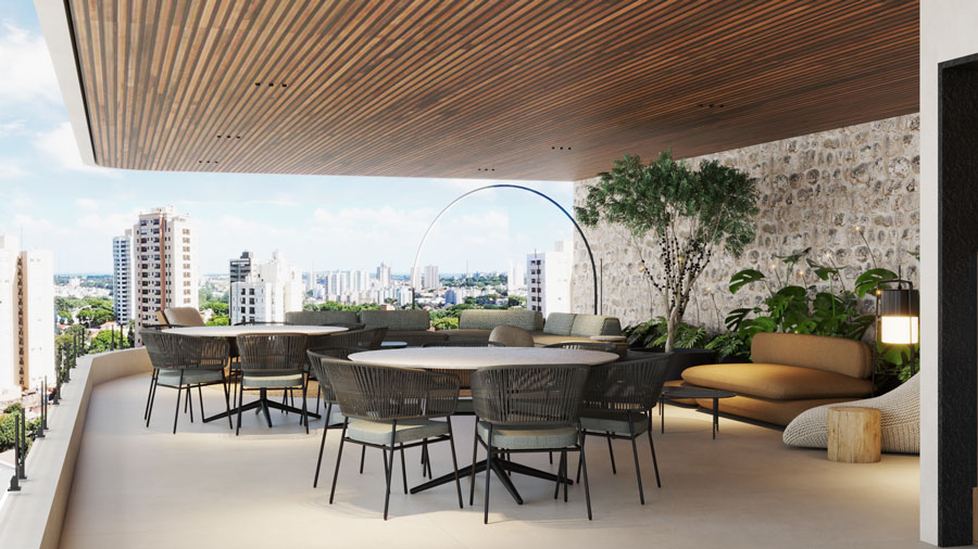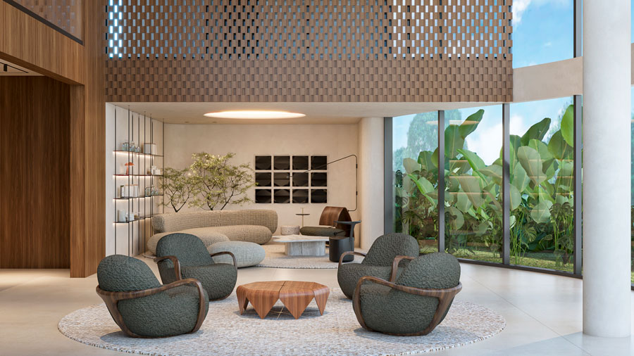 As áreas comuns do Signature foram decoradas e mobiliadas com projeto de interiores, luminotécnico e paisagismo assinados por Natália Jacob, em perfeita harmonia com o selo de excelência da Quanta.