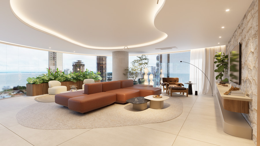 Inspirado nas formas orgânicas e nas linhas fluidas que marcam a arquitetura contemporânea, o Signature expressa leveza e imponência em igual medida. Suas linhas curvas e sinuosas se refletem também nos ambientes internos, criando uma atmosfera de elegância natural.